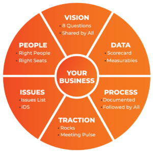 You must have one abiding vision, one voice, one culture, and one operating system. Any instance where your company can be pulled in two competing directions means you aren’t moving as one focused unit — and failure is sure to follow! EOS is an operating system that puts everyone on the same page.